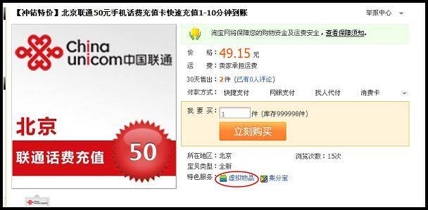 虚拟物品的定义:无邮费,无实物性质,通过数字或字符发送的商品。