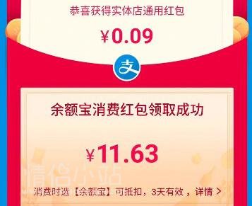 余额宝消费红包和到店消费红包一样,自领取之日起3天内有效,需使用后或过期后方可获得下一次的领取机会哦。