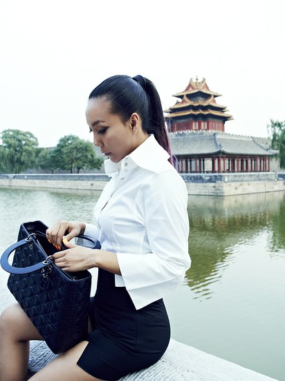 Dior经典方形手拎包沉稳大方,而又得当的选择了剪裁利落的白衬衫和包身一步裙,黑白两色干净清透,这样的职场装扮就算在办公室也是最吸人眼球的那一个。