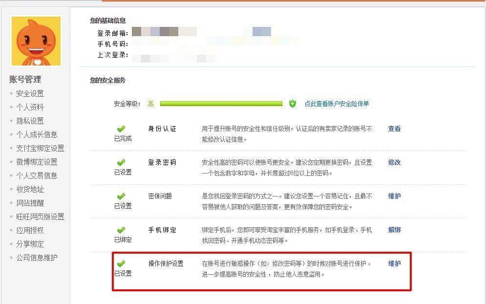 亲,您可以通过浏览器输入网址:www.110.taobao.com,登录安全中心进行操作,也可以通过【我的淘宝】—【账户设置】点击操作保护设置后的【维护】,即可进入安全中心。